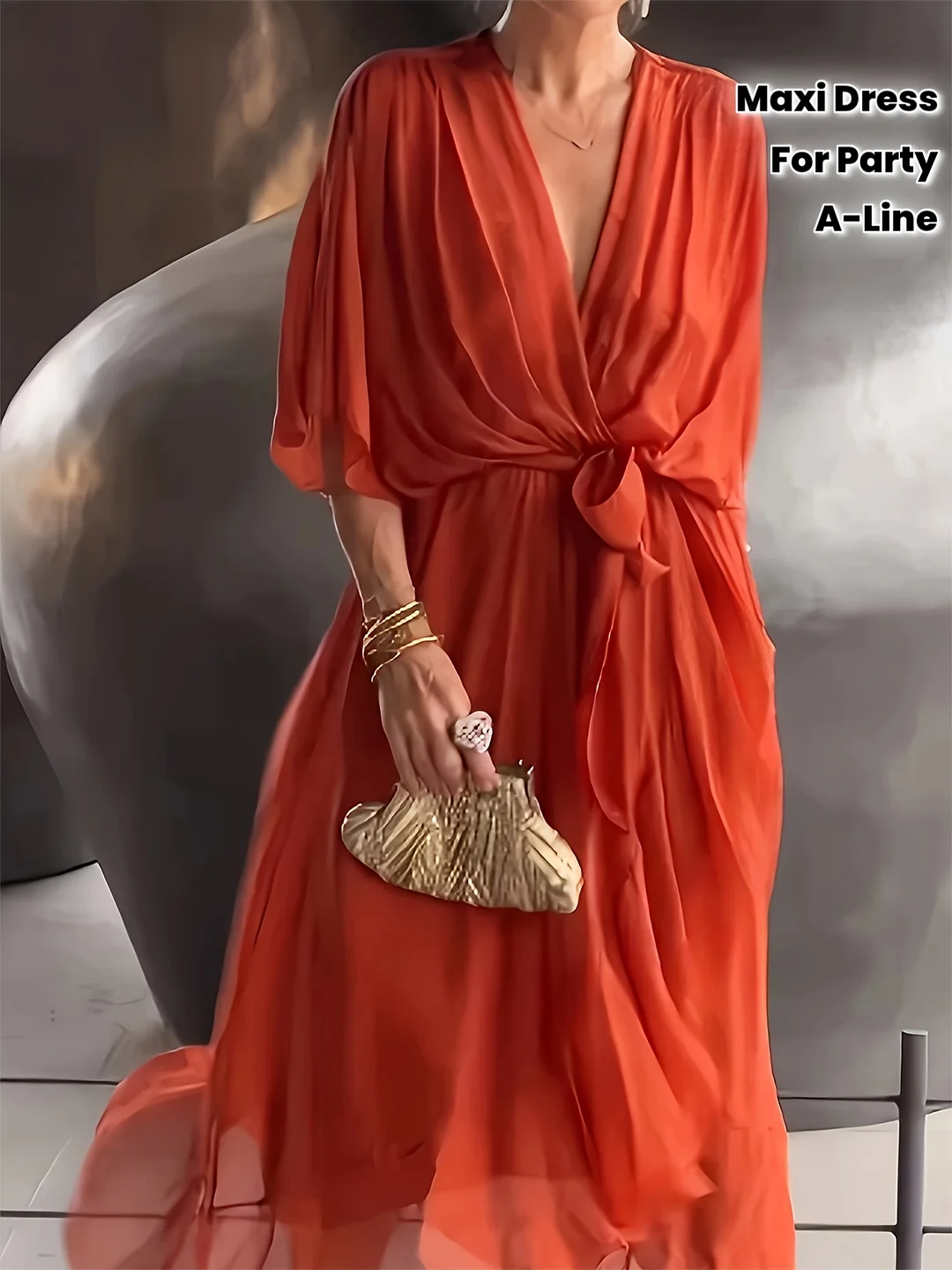 Women's Elegant V-Neck Maxi dress - Formal Party Wedding Attire, Machine Washable Non-See-Through Flowy A-Line Party gown in - Elegant Women's Evening Gown for Special Occasions