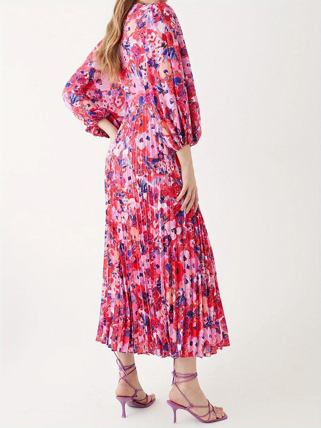 Women's Elegant Floral Print Chiffon A-Line Maxi/Midi Dress With Wrap & Long Lantern Sleeves - Vibrant Pink Blue Red White Black Floral Pattern, Machine Washable Formal & Semi-Formal Evening Wedding Party Dress, Spring/Fall Casual To Formal Outfits, Wedding Guest Dresses For Women, Dresses For Women Elegant Classy, Dress For Women, Wedding Guest Dresses Women, Dresses For Women