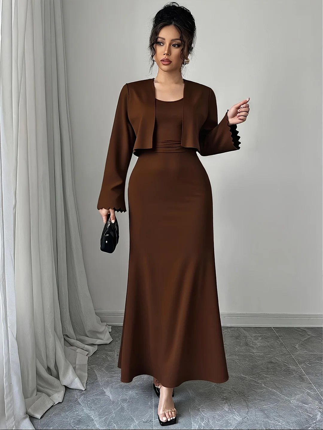 Plus Size, Women's Plus Size Elegant Solid Color Cardigan And Tank Dress Two Piece Set Suitable for Spring And Autumn Seasons New Autumn Promotion Plus Size Women's Clothing