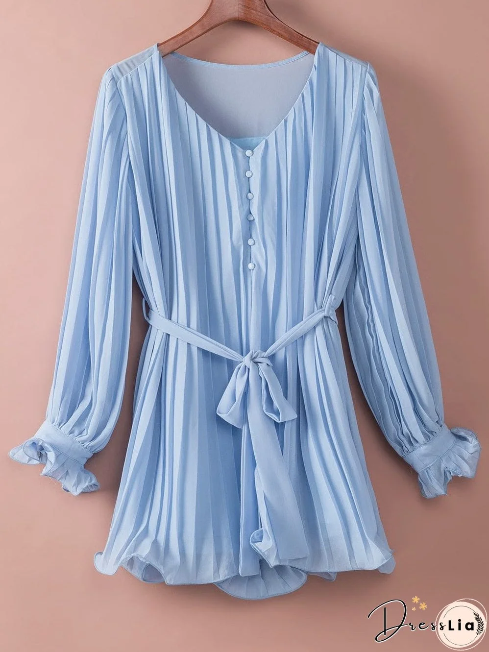 Elevate your style with this stunning sky blue pleated romper! Featuring a V-neckline, ruffled details, a tie waist, and button front, this breezy jumpsuit is perfect for any occasion. The soft, flowing fabric and flattering silhouette create a chic and effortlessly stylish look. Get yours today!