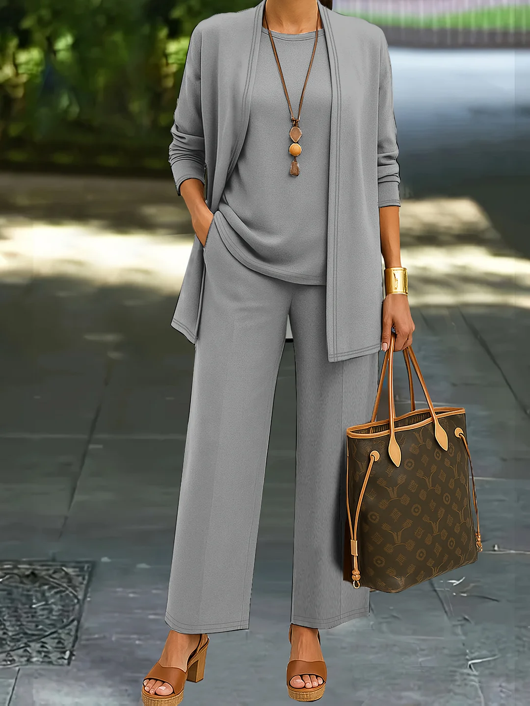Spring-Summer Three-Piece Set: Solid Color Long Sleeve Jacket, Vest, And Pants For Women